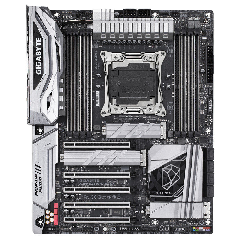 Gigabyte X299 DESIGNARE EX. Tipos de memórias suportadas: DDR4-SDRAM, Tipo de memória slots: DIMM. Fabricante do processador: Intel, Tomada de processador: LGA 2066. Tipo de ethernet interface: Gigabit Ethernet. Família de chipset da placa-mãe: Intel, Motherboard chipset: Intel X299
