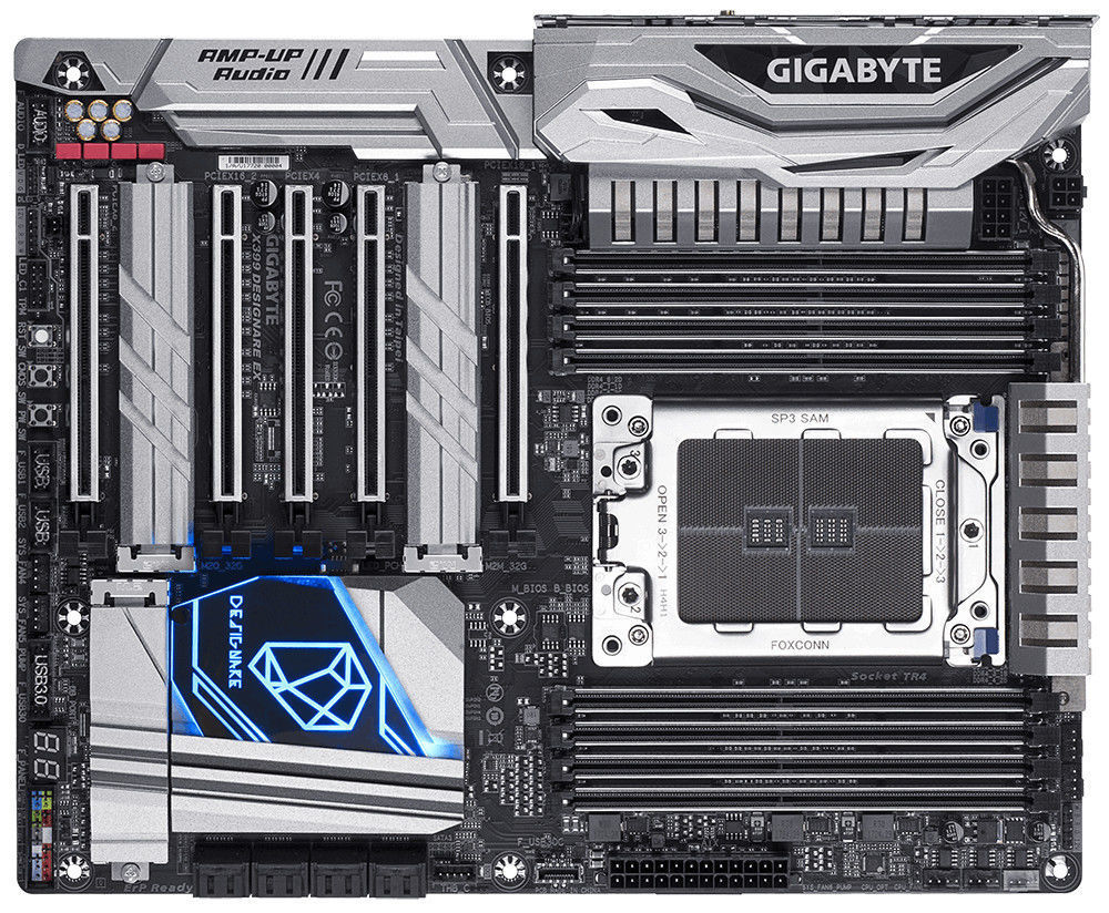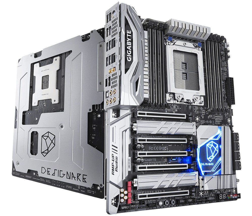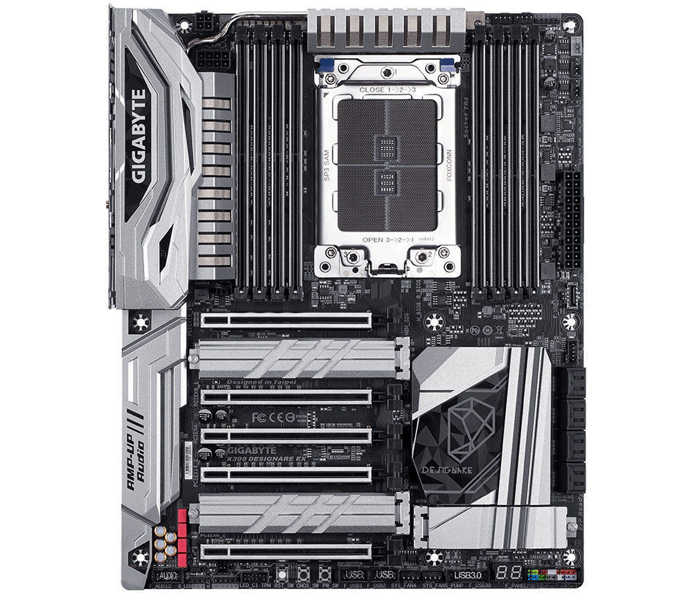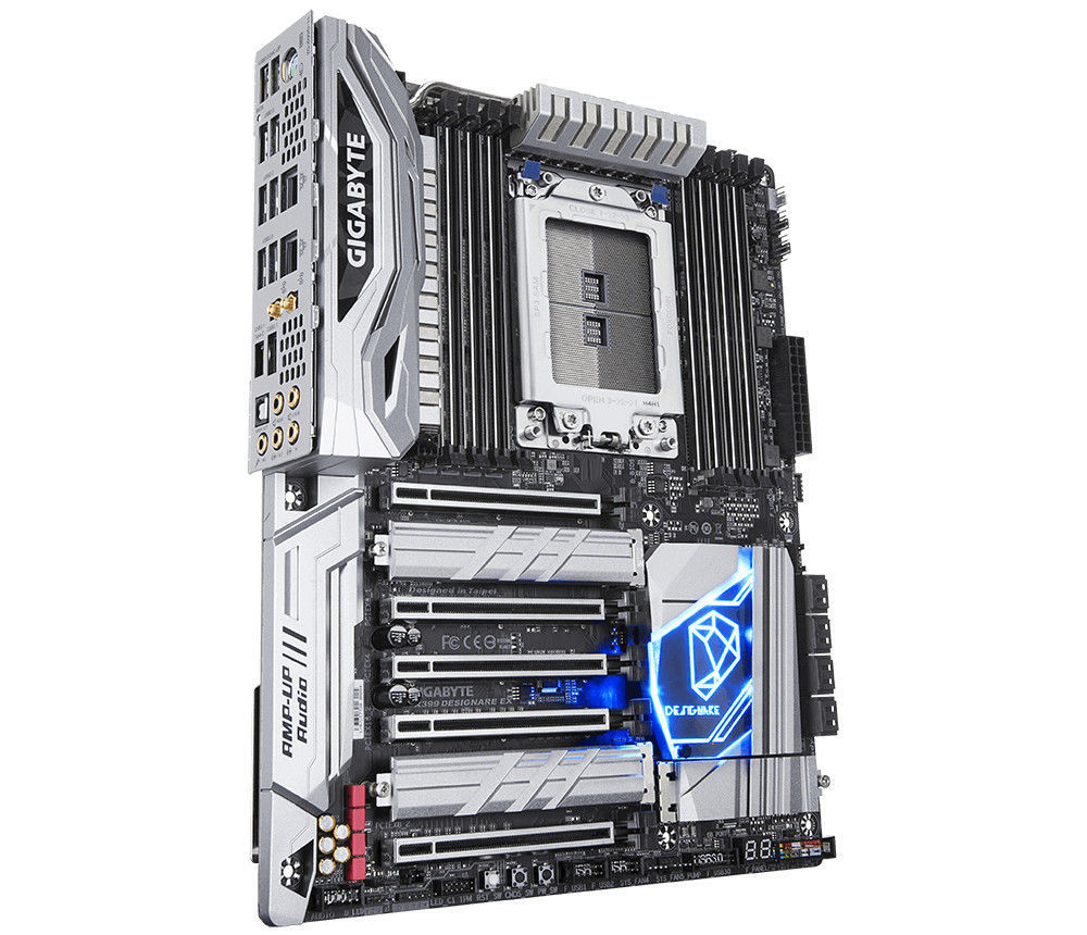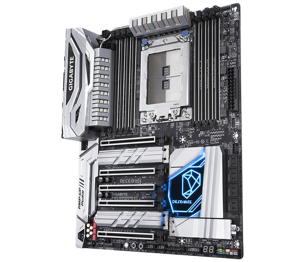 Gigabyte X399 DESIGNARE EX. Tipos de memórias suportadas: DDR4-SDRAM, Tipo de memória slots: DIMM. Fabricante do processador: AMD, Tomada de processador: Socket TR4. Tipo de ethernet interface: Gigabit Ethernet. Família de chipset da placa-mãe: AMD, Motherboard chipset: AMD X399