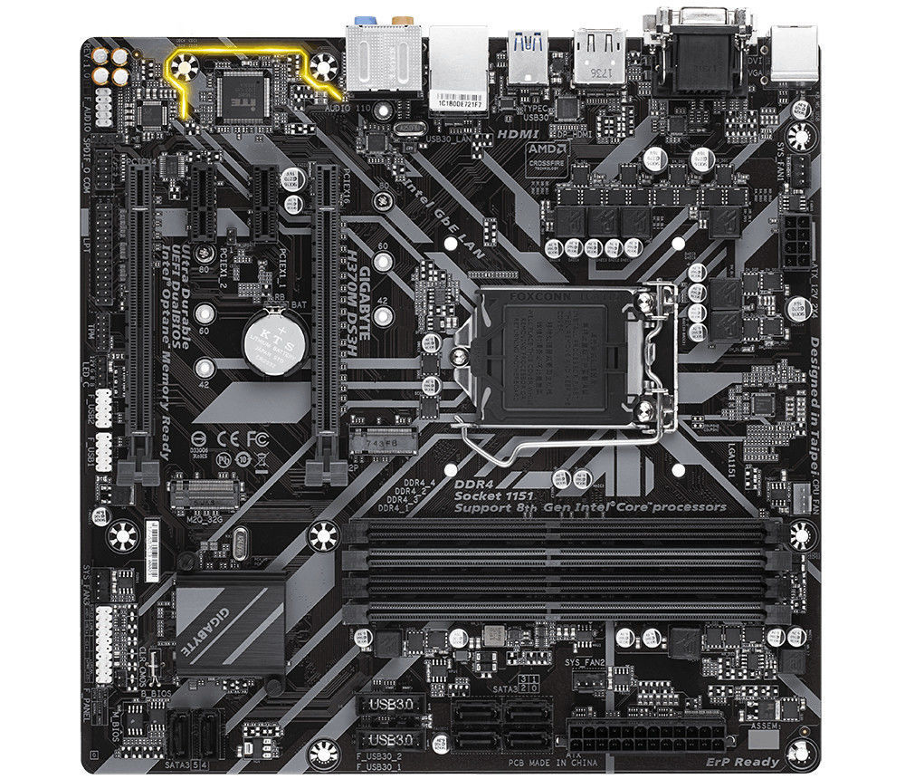MB GIGABYTE H370 SKT1151 4xDDR4 1xUSB-C+7xUSB3.1/HDMI/DP/DVI ATX
